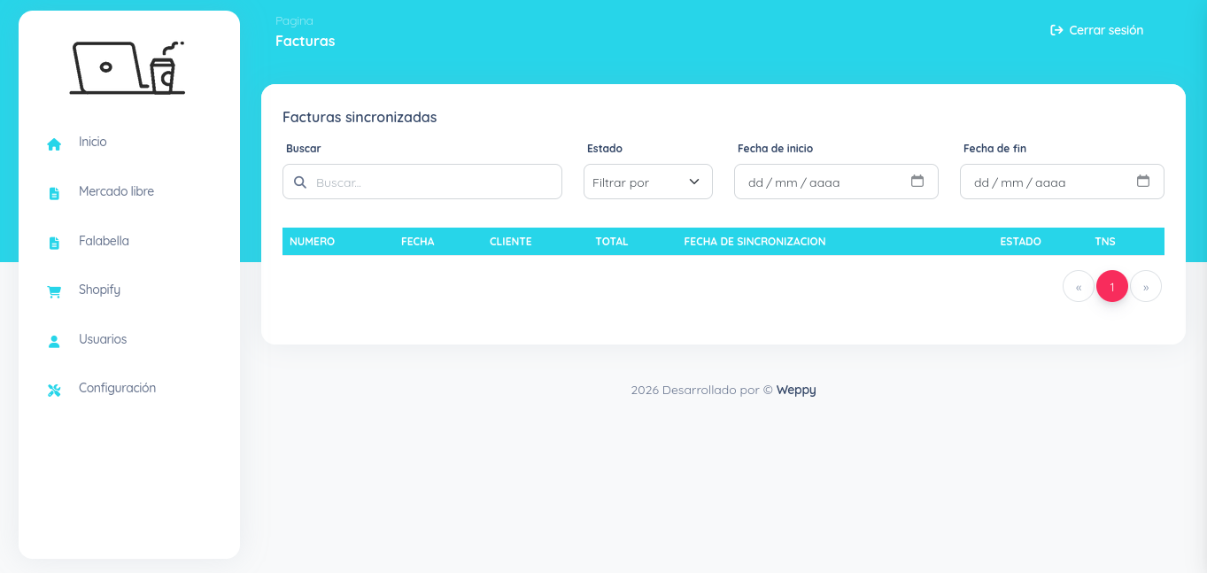 TNS Integraciones con comercios Sistema de integración que sincroniza automáticamente las ventas de plataformas e-commerce con el sistema contable TNS. Permite conectar y enviar información de pedidos, clientes y facturación desde: Mercado Libre a TNS Falabella a TNS Shopify a TNS Optimiza procesos, reduce errores manuales y asegura consistencia en la información contable en tiempo real.